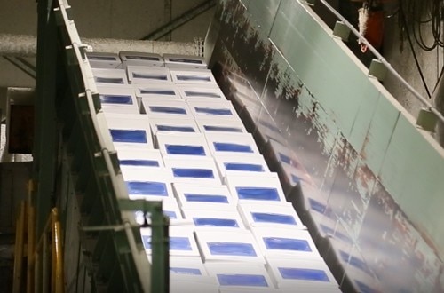 回収した機密文書は、開封することなく箱ごと原則24時間以内(※)に溶解処理されます。回収から処理が完了するまで分別工程が一切入らないので、機密文書が人の目に触れることは絶対にありません。処理後は製紙メーカーでリサイクルされ、段ボールやトイレットペーパーなど様々な製品に生まれ変わります。