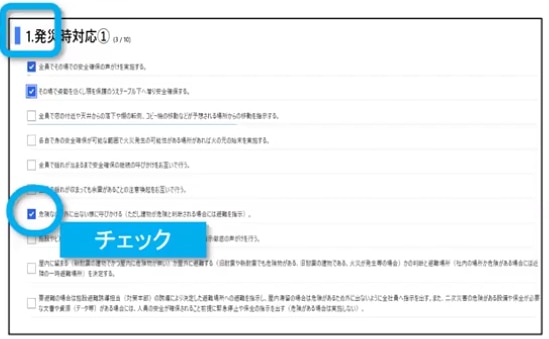 期待行動項目の確認により、必要な行動や職場防災ルールを再認識。