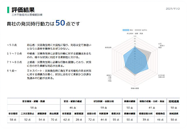 災害発生を模擬的に体験できる実践的なシミュレーション訓練により、災害発生時の行動力の可視化と行動課題を明確化することができます。